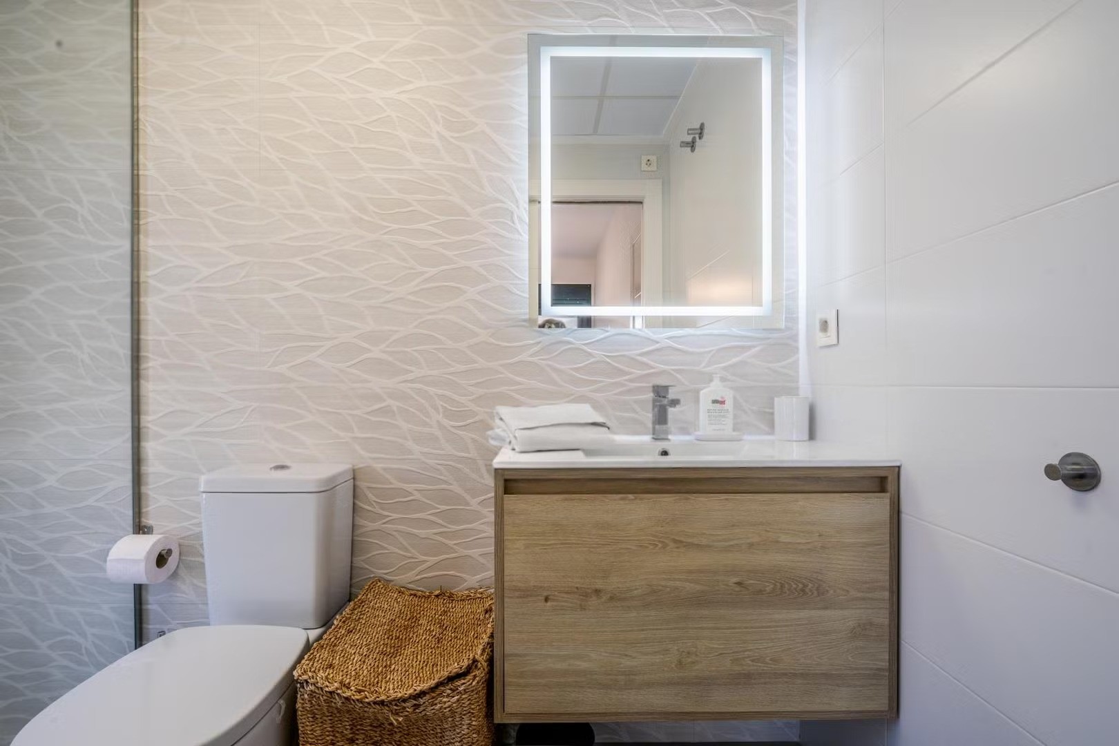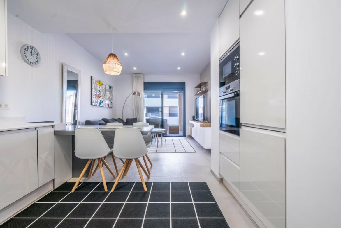 KEY READY RESALE modern two bedroom two bathroom first floor apartment located in Santiago de la Ribera just 10 minute walk to the beach. Imagene living so close to the sea.
