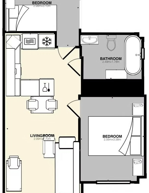 We are happy to offer this south facing first floor apartment which has golf views from the terrace. There is a open plan kitchen with ample storage and work surfaces which leads to the lounge which has patio doors to the terrace. Two double bedrooms with fitted wardrobes are divided by the family bathroom which has a window. The master bedroom boast patio doors to the terrace. Imagene walking up to that view and sunny terrace. There is evelator access and communal pools and garden areas.