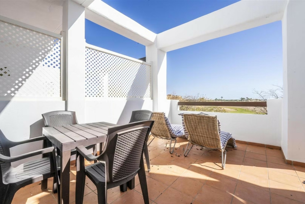 We are delighted to offer this second floor apartment with two bedrooms and one bathroom on Terrazas de la Torre Golf Resort which is located just 15 minutes drive to the beach, Murcia Airport and Murcia City and situated between two spanish towns of Roldan and Balsicas.