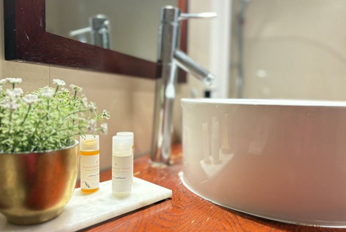 The apartment includes a fully fitted bathroom and two comfortable bedrooms, each with access to a small private terrace, bringing in natural light and fresh air.