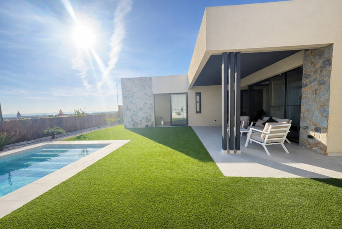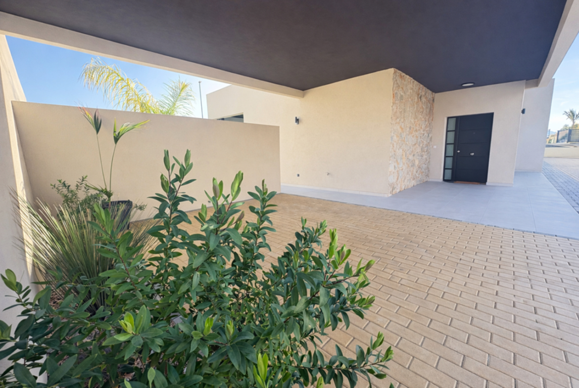 The villa is frontline and overlooks a green area scheduled for imminent development, meaning there will be no property built directly in front of it, ensuring open views and added privacy.