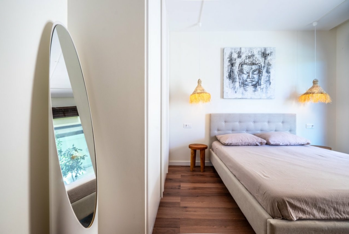 This villa offers a distinctive design both inside and out, featuring modern, innovative architecture that perfectly complements the environment. The spacious interior is thoughtfully crafted to provide comfort and style, while the extensive private garden and swimming pool create an oasis for relaxation and enjoyment.
