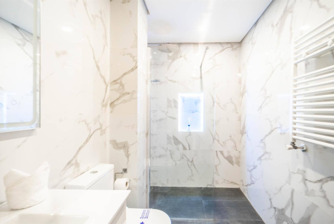 Entering this town centre apartment you come into the open plan kitchen and living room.The kitchen has been fully upgraded with an island, new appliances and cupboards.The Living room has double doors to the terrace which has space for outdoor furniture and overlooks the town centre.Down the hallway you have one of the bathrooms that has been fully upgraded with a walk in shower, sink unit and tiles.Further down the hall you have two spare bedrooms with fitted wardrobes.The master bedroom is at the end of the hallway and has an en-suite bathroom with a bathtub and fitted wardrobes.This Apartment also has a fantastic rental potential.7500,00 euro per annum rental guarantee available.