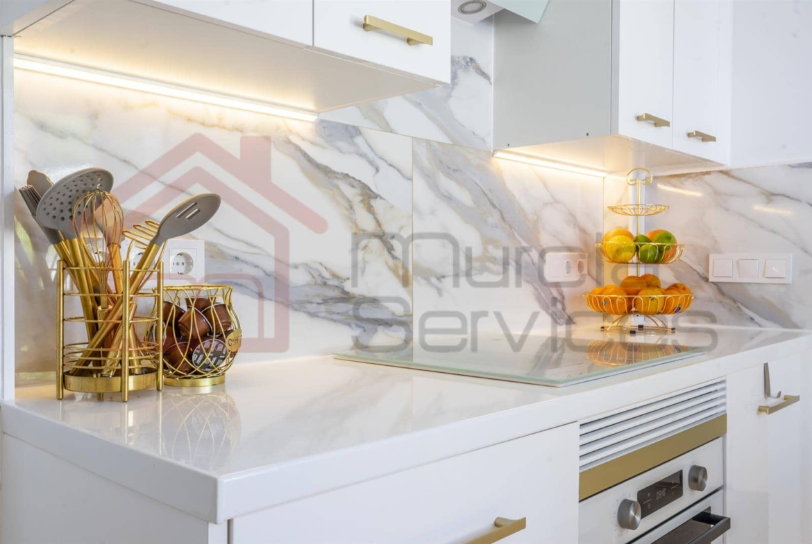 Fully fitted, upgraded, and extended kitchen with access to the garage
