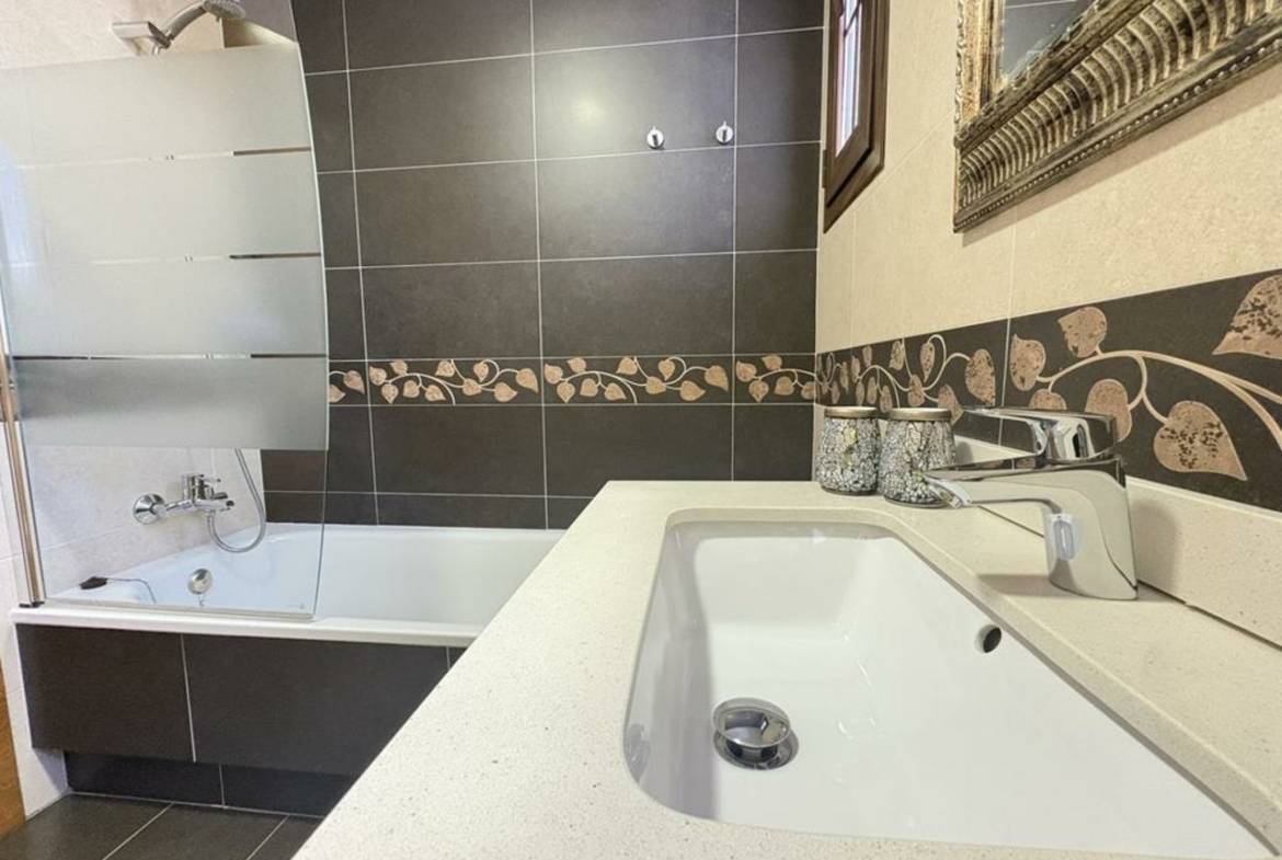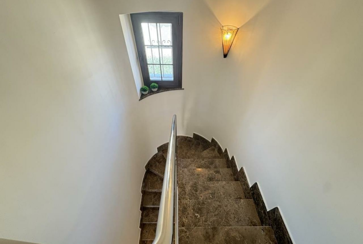 A stunning marble staircase leads you to the upper level, where you’ll find a large master suite with a private bathroom. This space is full of light and opens directly onto a spacious solarium terrace with panoramic views of the surrounding nature—perfect for sunbathing, entertaining, or simply enjoying the breathtaking scenery.