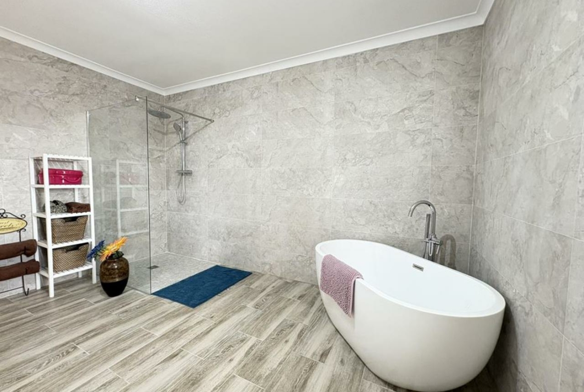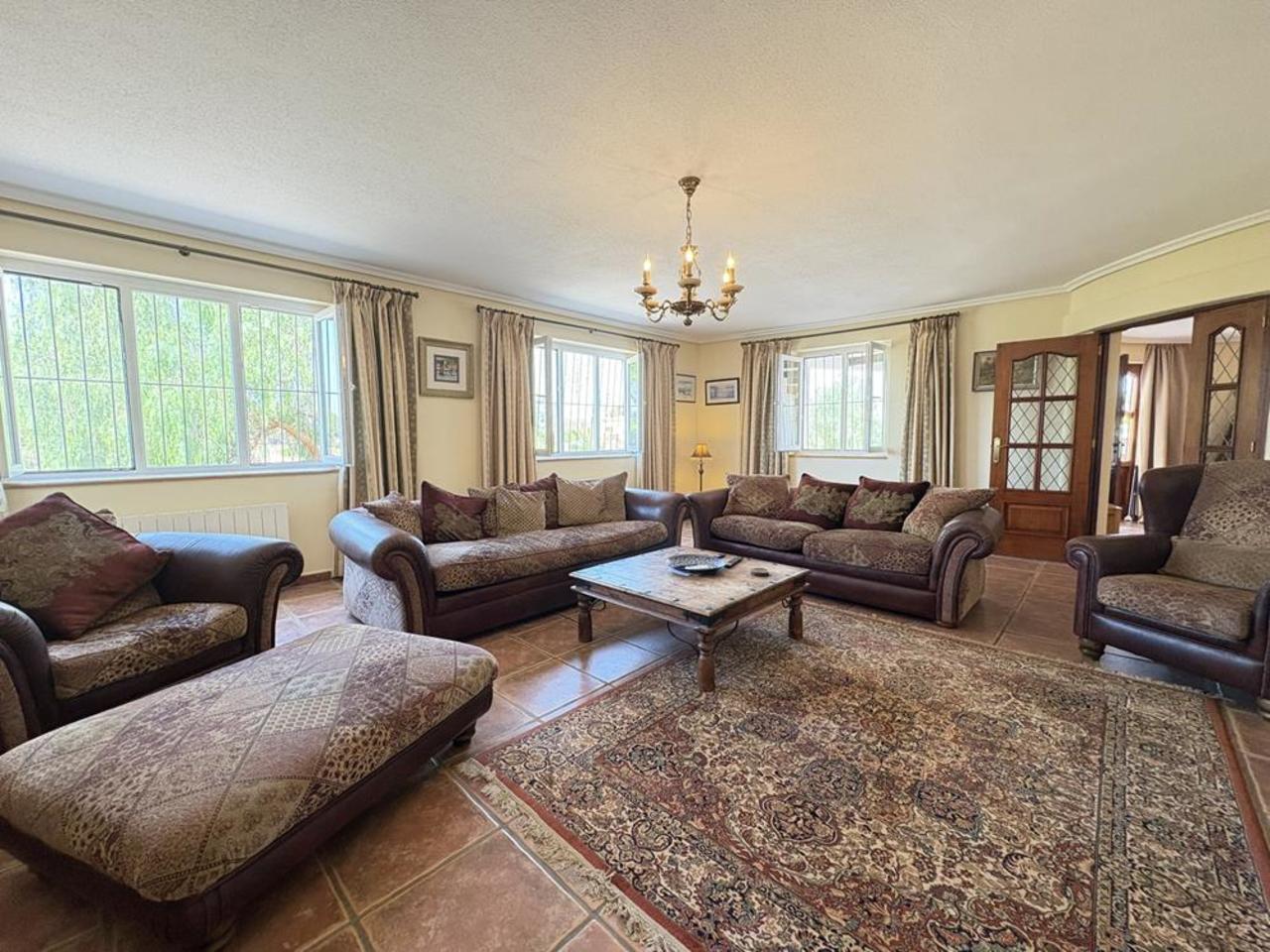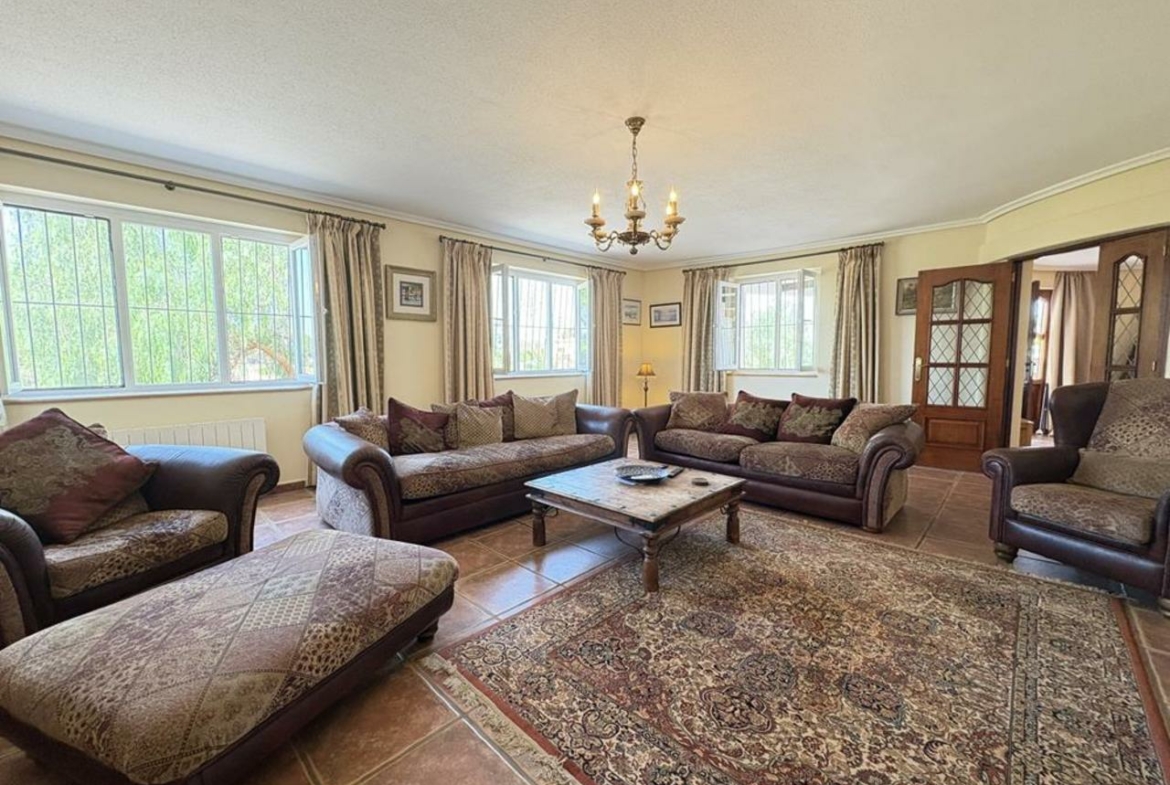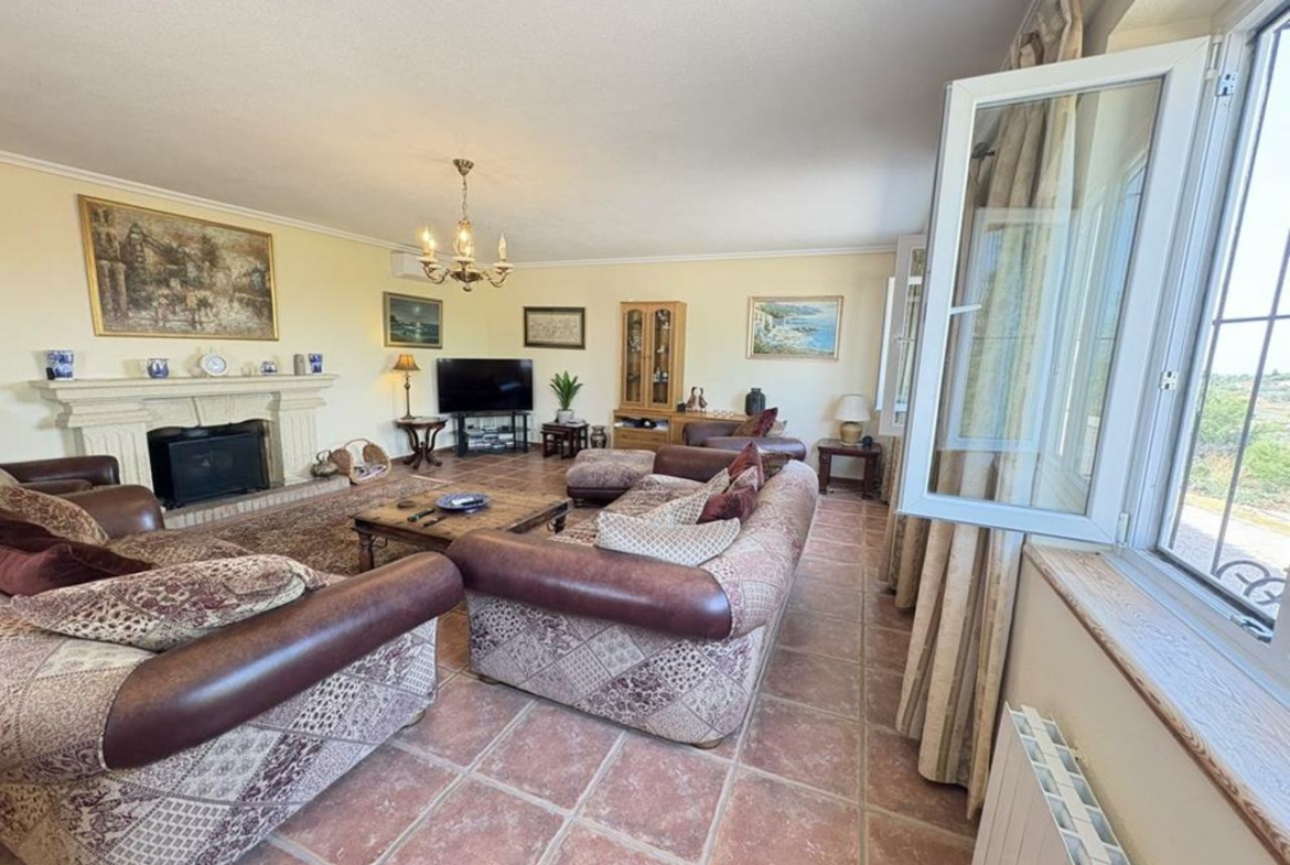 The primary house is a single-storey detached villa with a total built area of 350 m², plus a 40 m² covered porch. Every room is impressively spacious, from the entrance hall and open-plan living-dining area with a striking natural stone fireplace, to the kitchen and bedrooms.
