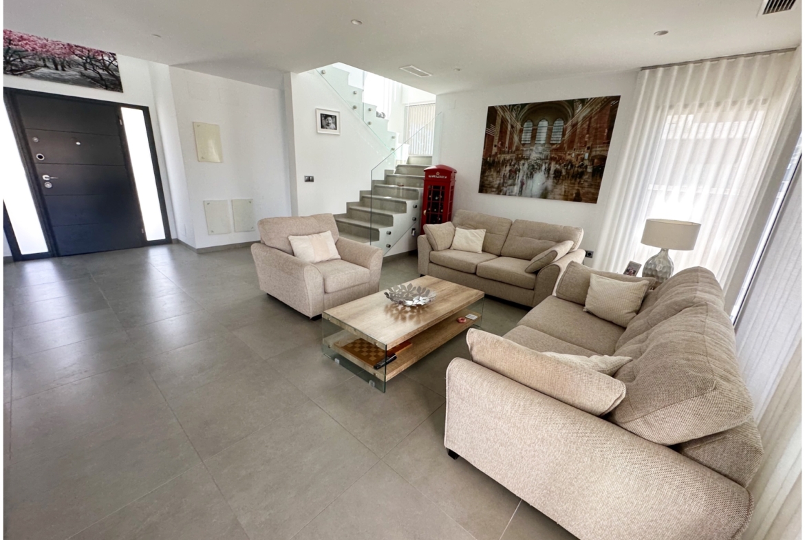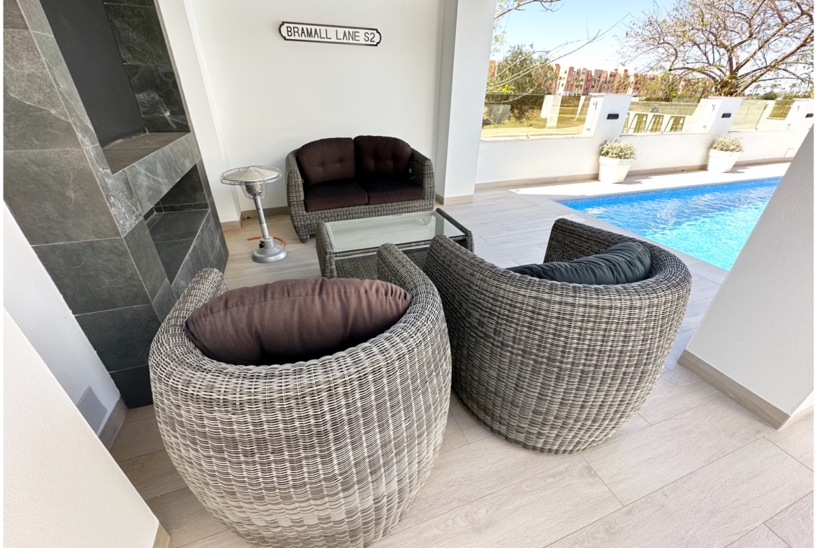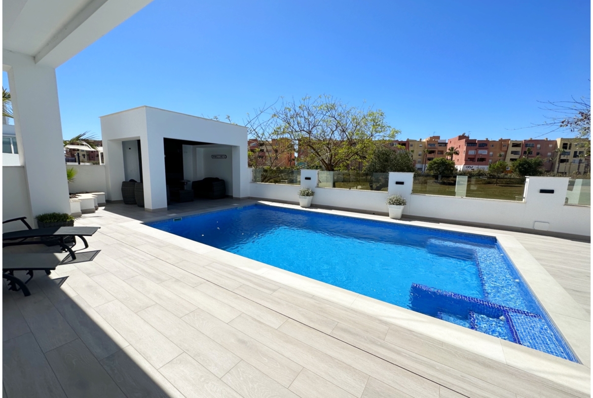 We are delighted to present this exceptional new-build detached villa, set on a generous 400m² plot with spectacular frontline views of Mar Menor Golf Resort. South-facing and thoughtfully designed, this luxurious 5-bedroom, 6-bathroom home features high-end finishes, modern technology, and incredible outdoor living spaces—perfect for entertaining or relaxing in the sun.
