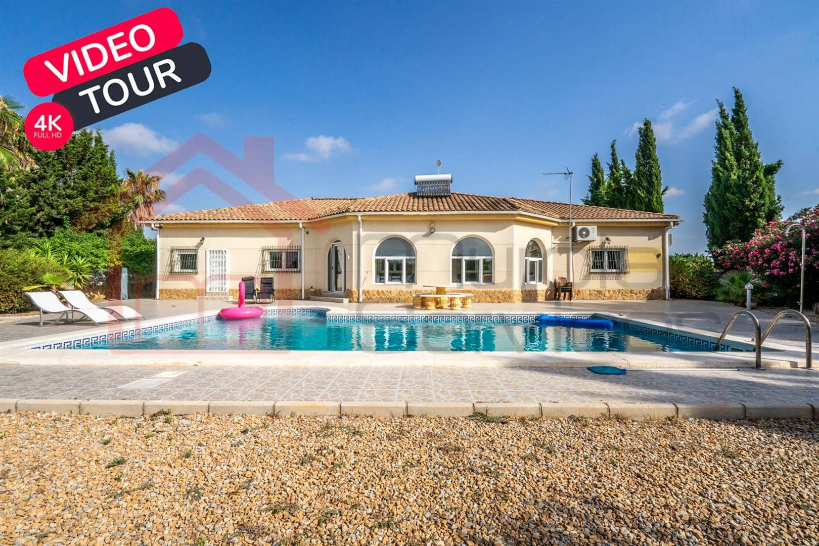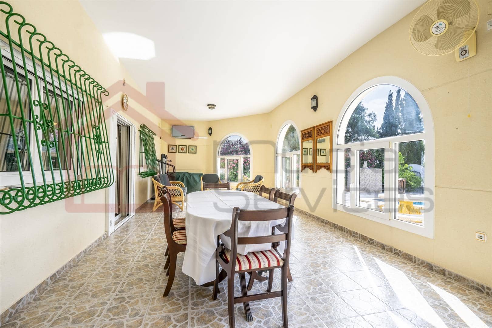 Presenting this beautiful 5 bedroom villa.All rooms with electric heatersAll bedrooms have fitted wardrobes.The master bedrooms has an en-suite with a large bathtub and a walk in wardrobe.Two of the bathrooms are en-suites.The kitchen is very spacious and fully fitted, there is also a convenient utility room.The living space is very spacious and open and has a cosy fire place for the winter months.Following off from the living area you have a enclosed terrace space which is bright with natural light and has great views of the pool and gardens.The garden and pool area is a great space for summer and has multiple areas for seating.There is also a well kept garden that wraps around the whole property.Double garage.Electric gate.Air conditioning throughout the property.