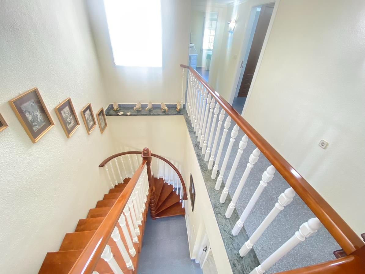 An elegant wooden staircase leads to the upper floor, where there are six additional spacious bedrooms and three bathrooms. One of the bathrooms is en suite, and several of the bedrooms have access to a private terrace, where you can enjoy the stunning views and the sea breeze.