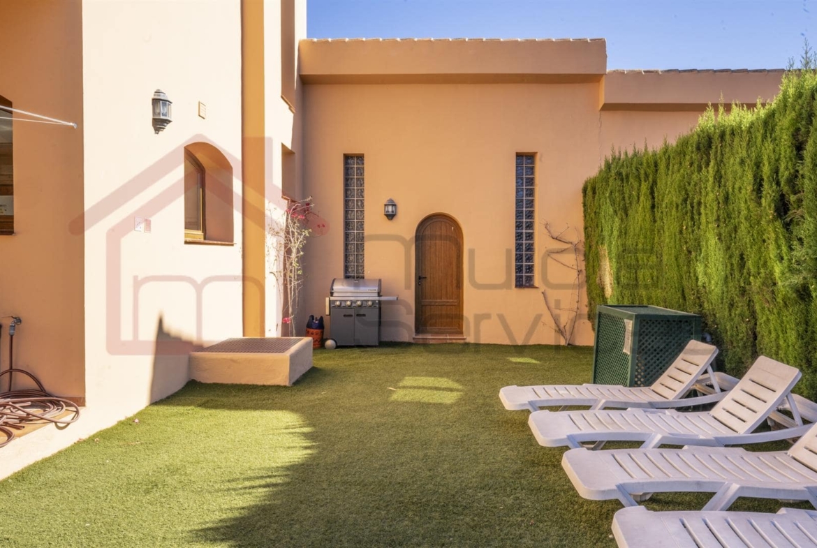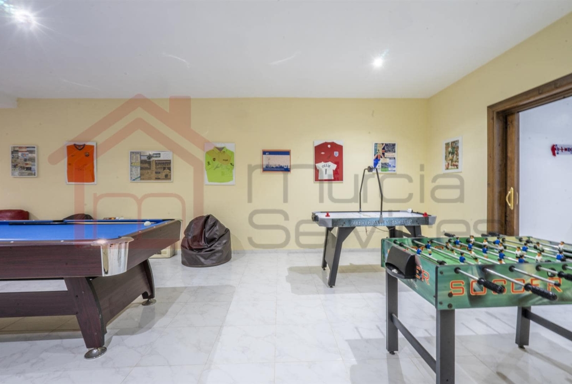 Located on the Northside of La Manga Club in El Coto.400 m2 plot with four double bedrooms.Three of the bedrooms have their own en-suite bathrooms.Open plan living/dining area with multiple doors taking you out to the garden.The kitchen is fully fitted with plenty of storage and a breakfast bar.The living room is also complet with a cosy fireplace.Private pool and multiple seating areas to enjoy the spanish sun.The master bedroom has a spacious private terrace.The basement is currently being used as a games room and entertainment area.Private garage.Private gated community.