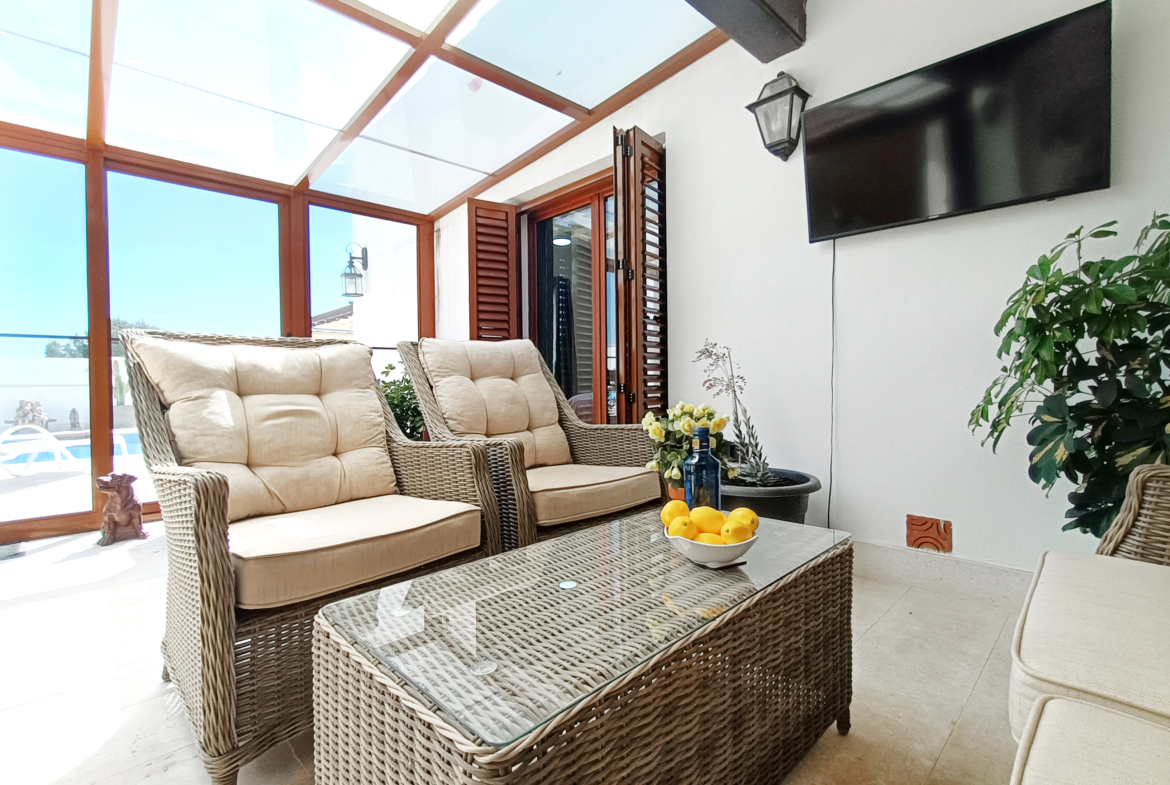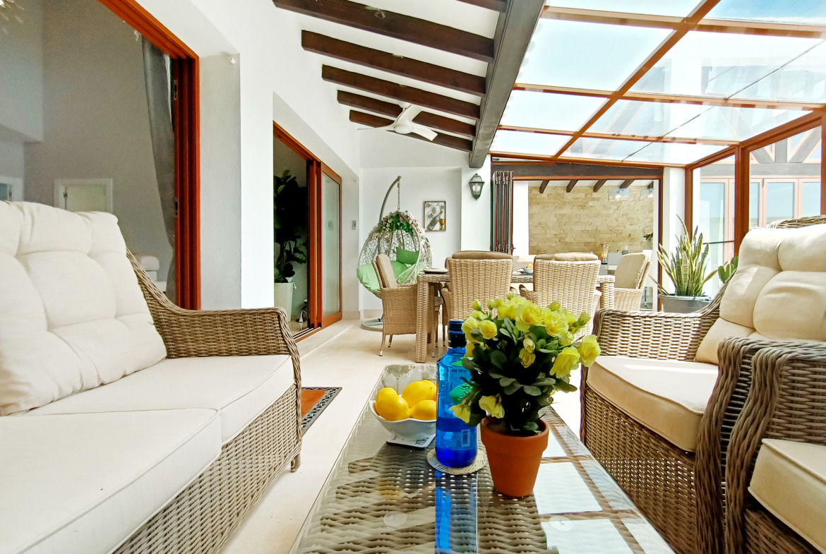 This luxurious beautifully renovated 4-bedroom, 3-bathroom villa offers stunning golf views. With a beautiful bright conservatory, bedroom/gym and office this property presents the perfect opportunity to create your ideal Mediterranean home.