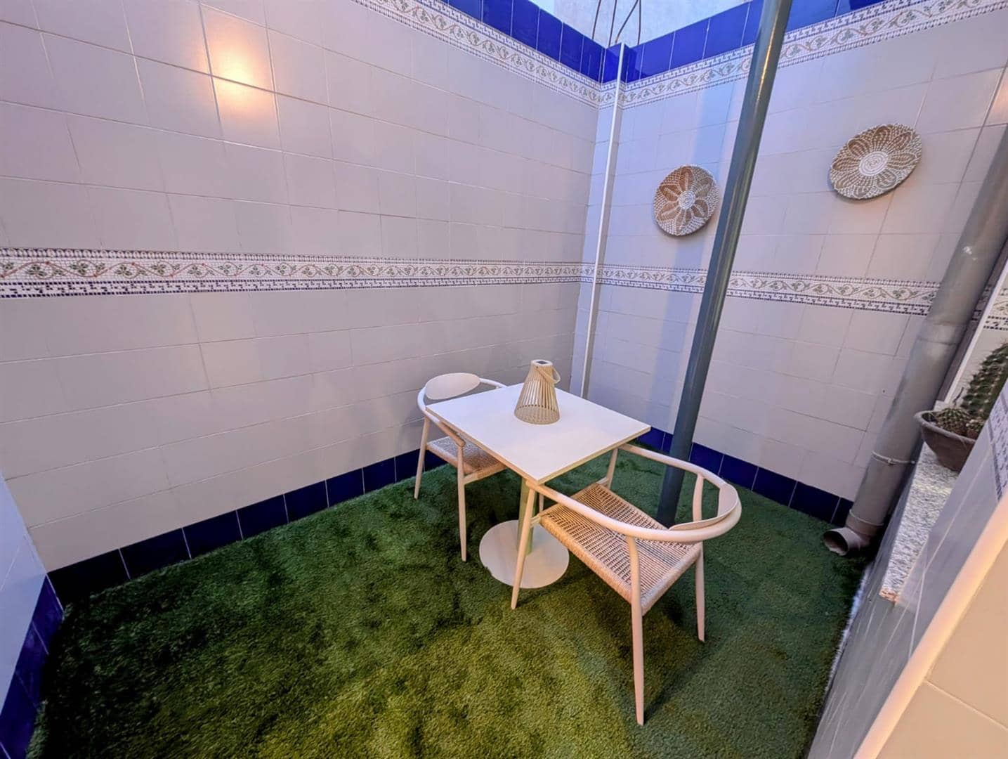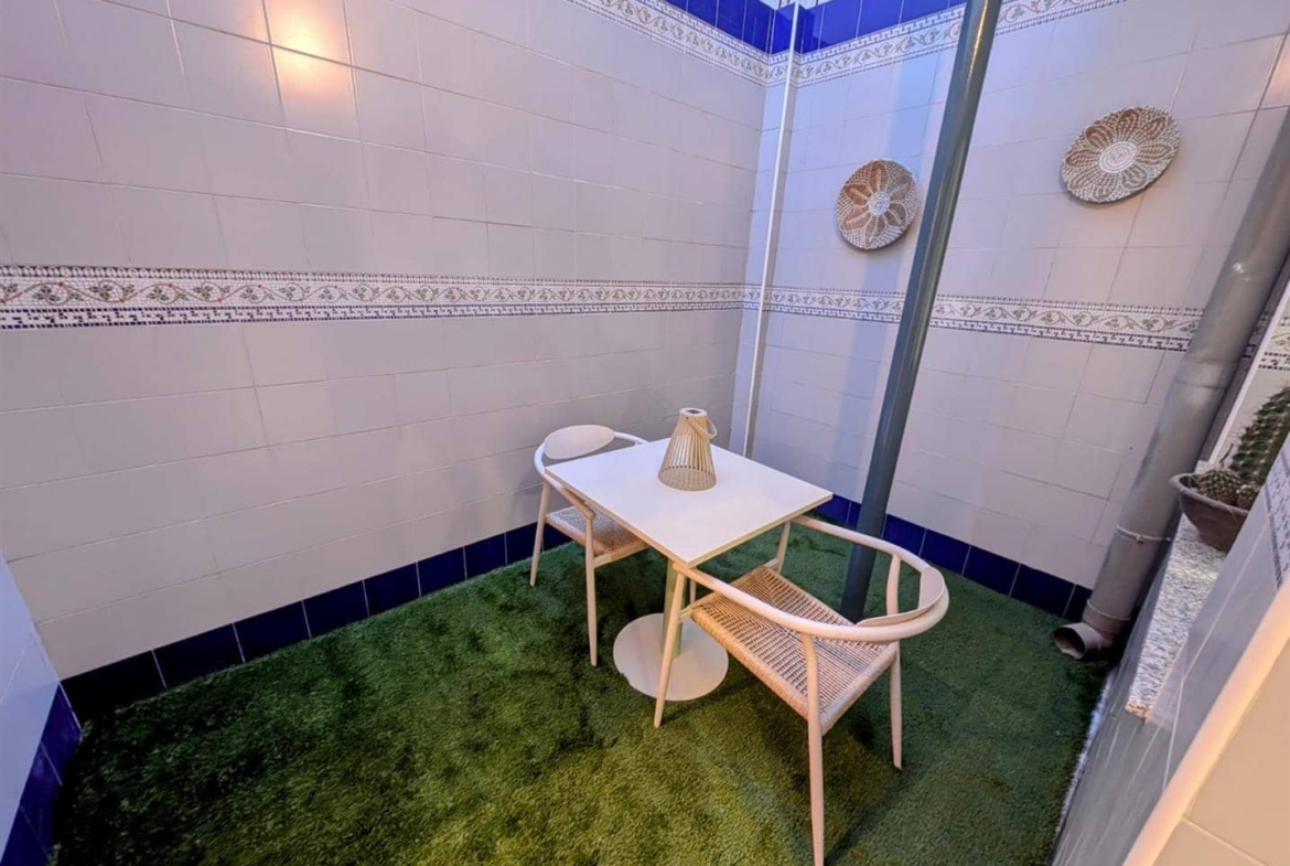 This stunning renovated townhouse has three double bedrooms.The master is spacious and has access to a terrace, also has a space for a walk in wardrobe or bathroom.The family bathroom has a bathtubThe kitchen is very spacious and has a wonderful fireplace and access to a small courtyardThere is a downstairs bathroom with a walk in showerThe living room is beautifully done and cosyDecorative paneled walls throughoutFully furnished.Roof terrace