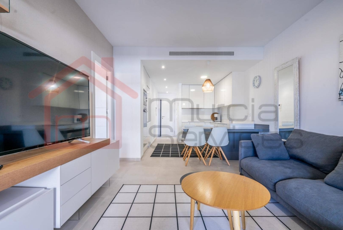 Two double bedrooms with fitted wardrobesThe master bedrooms is spacious and has an en-suite with a walk in showerThe second bedrooms is also spacious and has large windowsOpen plan modern kitchen with a breakfast barThe living room has access to the terrace which has views of the communal poolAir conditioning throughout the propertyOption to buy parking space and storage unit.Close to the beachesNorth facing