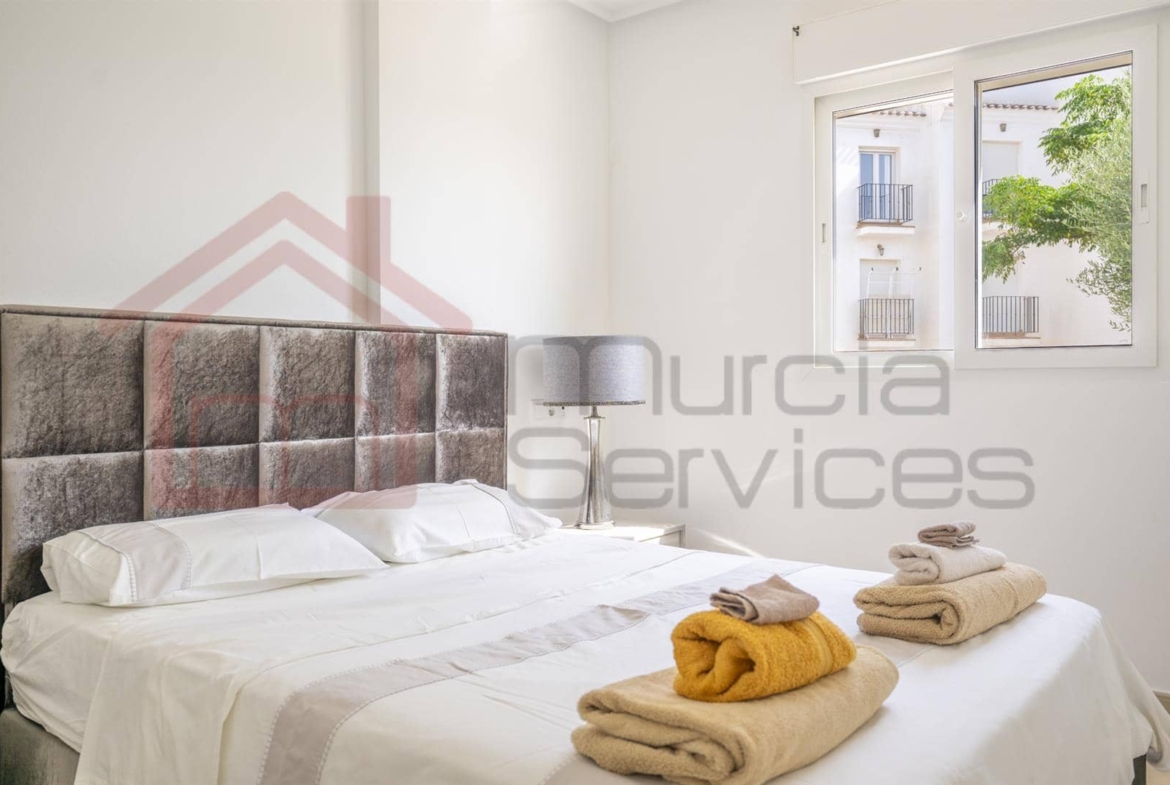 Two double bedrooms, both with fitted wardrobesFully fitted kitchenSpacious living room with sliding doors to the terrace.Glass curtains on half of the terrace for use all year roundGarden area with direct access to the gardens and communal poolAir conditioning throughoutSouth west facing24 hour security